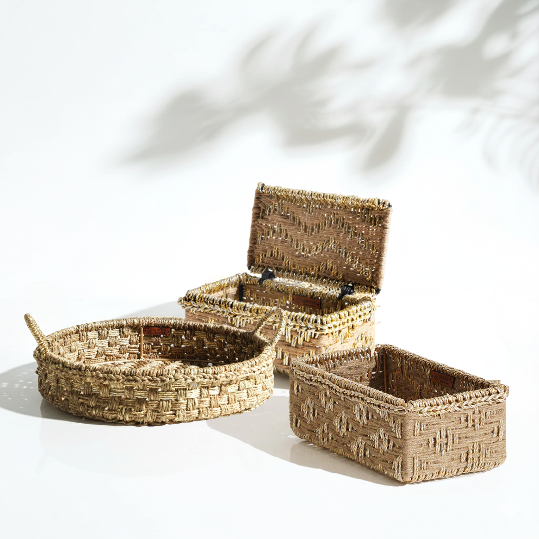 Celebrate meaningful and conscious gifting with our Handwoven Sustainable Storage Set, crafted to bring elegance, utility, and eco-friendly charm into any home. Thoughtfully designed, this set includes versatile organisers featuring intricate weaving and durable construction perfect for storing keepsakes, décor items, accessories, or everyday essentials.