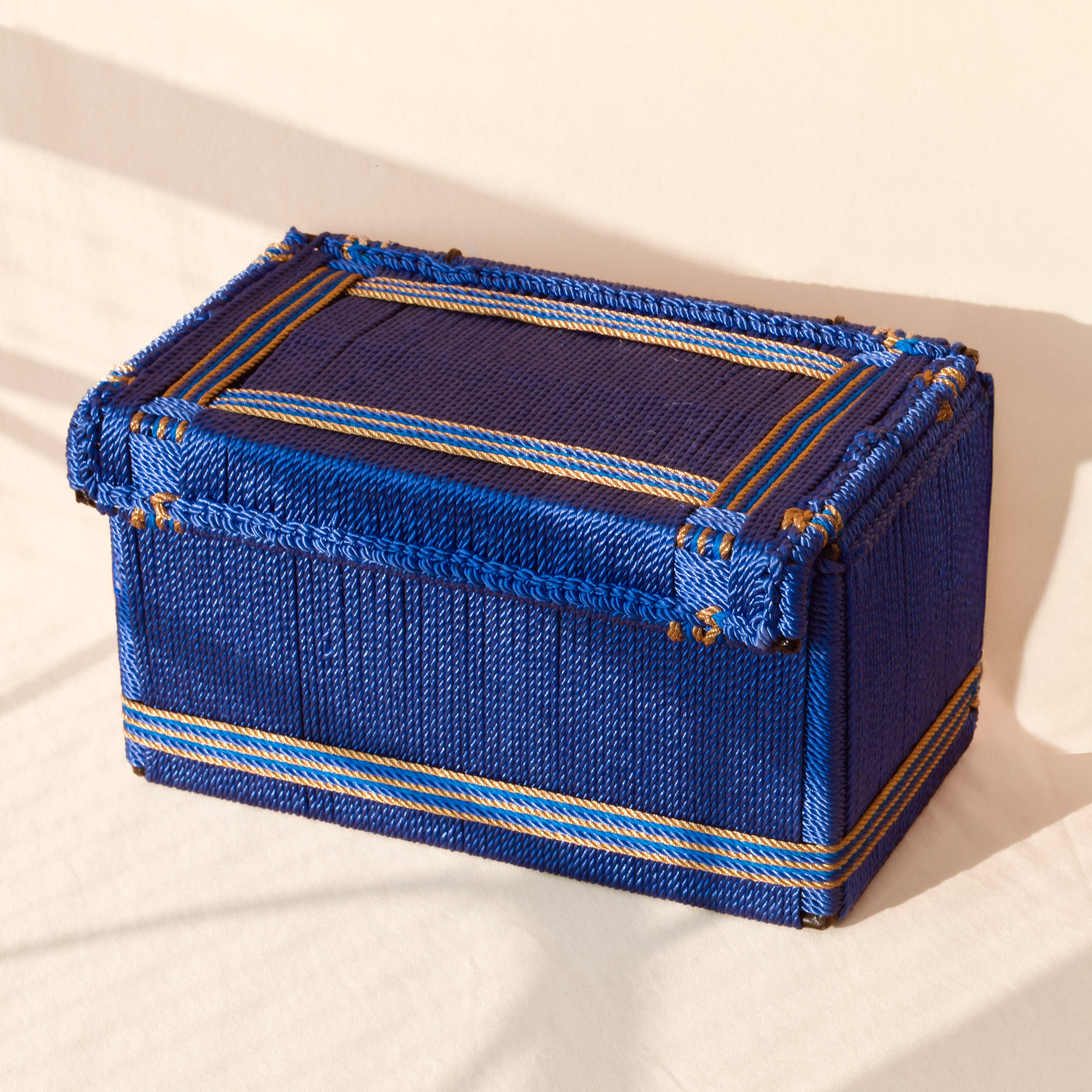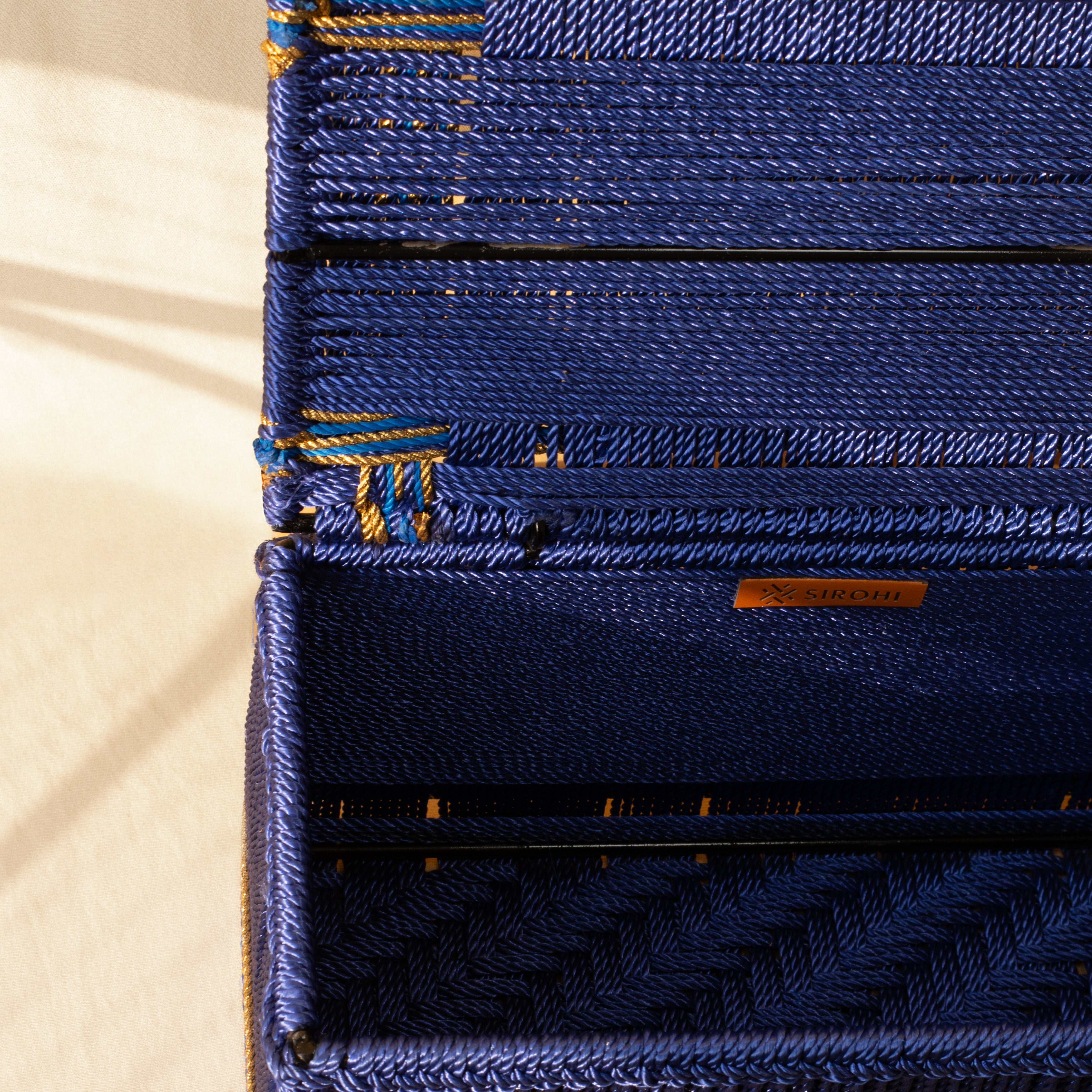 Experience the perfect blend of vibrant elegance, timeless craftsmanship, and sustainable design with this handwoven storage box crafted from premium resham rope. Thoughtfully made by Sirohi’s skilled women artisans, it is ideal for organising essentials, premium gifting, trousseau curation, or adding a refined decorative accent to your home. Durable, artisanal, and consciously crafted, it brings sophisticated charm and mindful luxury into every space.