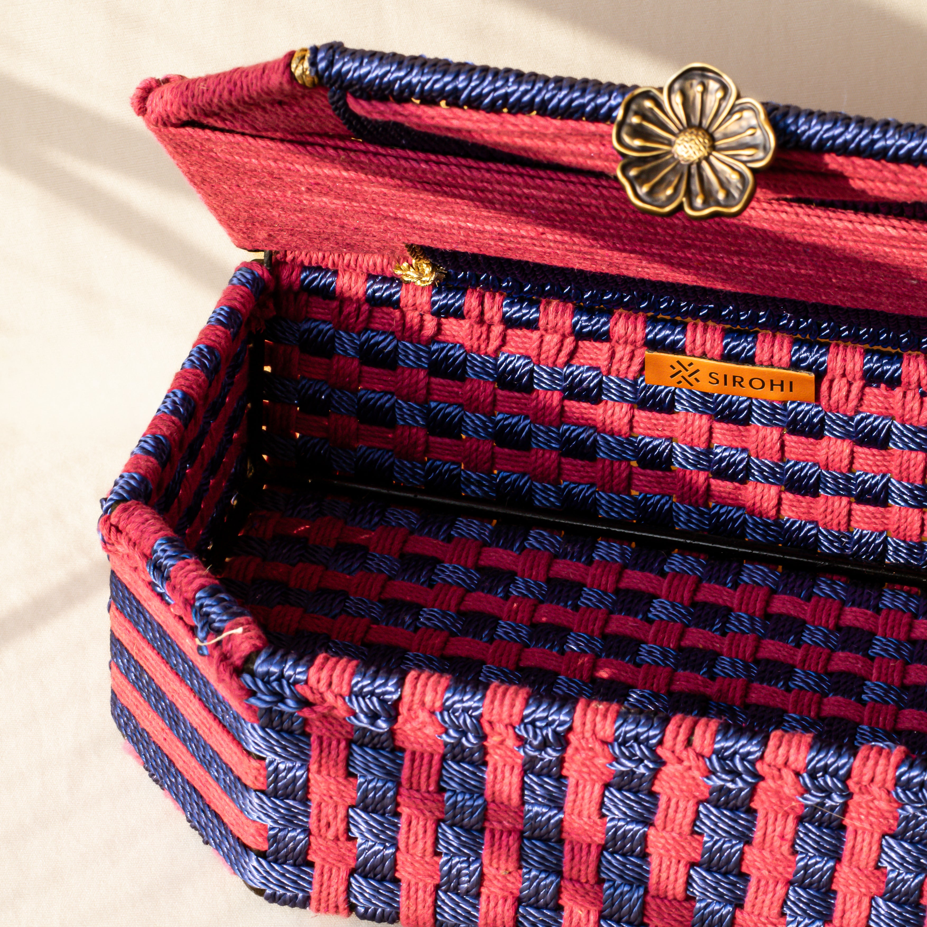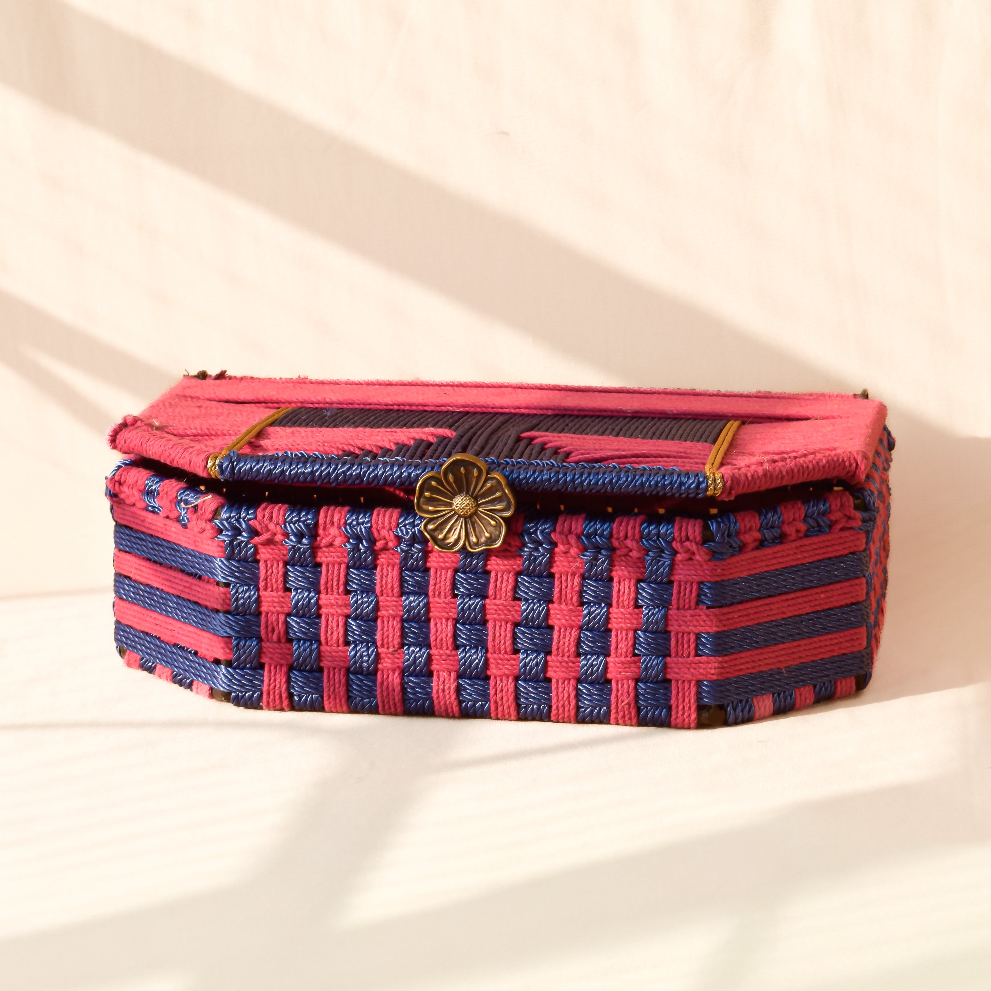 Experience the perfect mix of soft texture, vibrant craftsmanship, and sustainable design with this handwoven storage box crafted from premium cotton rope and smooth resham fibres. Thoughtfully created by Sirohi’s skilled women artisans, it’s an elegant choice for organising essentials, premium gifting, trousseau curation, or elevating everyday spaces. Durable, artisanal, and consciously made, it brings handcrafted charm and refined luxury into your home.