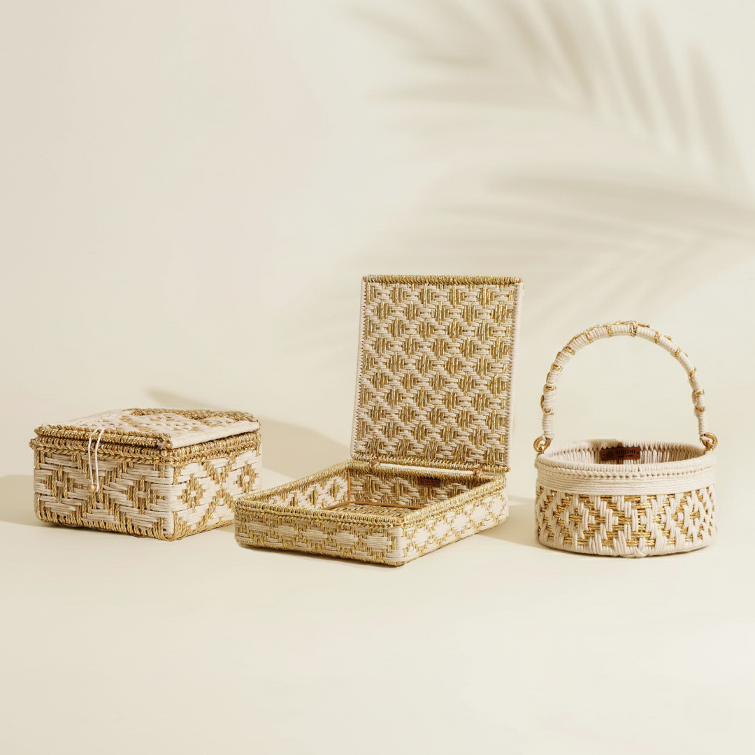 Celebrate meaningful and conscious gifting with our Handwoven Sustainable Storage Set, crafted to bring elegance, utility, and eco-friendly charm into any home. Thoughtfully designed, this set includes versatile organisers featuring intricate weaving and durable construction perfect for storing keepsakes, décor items, accessories, or everyday essentials.